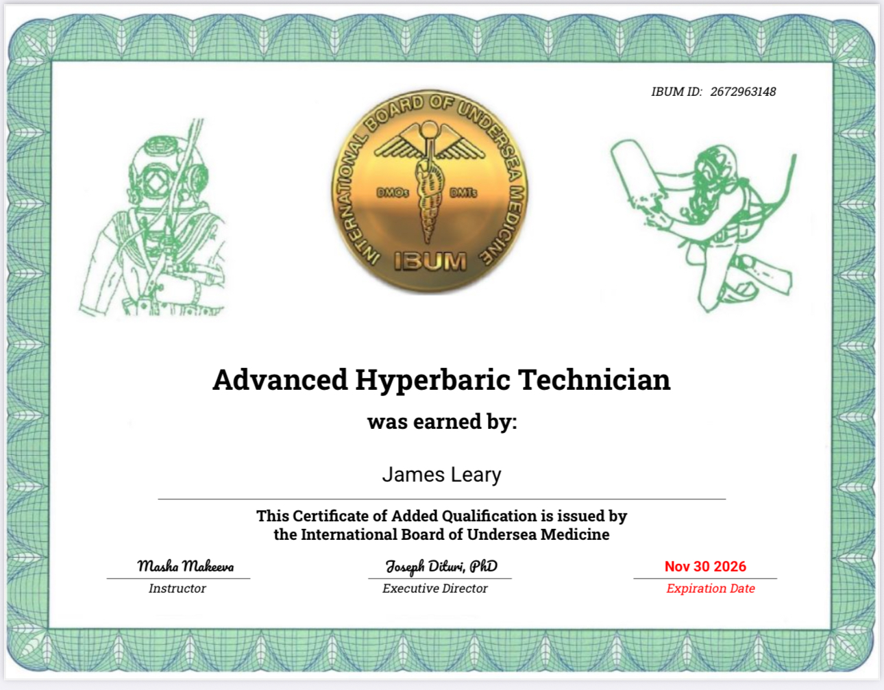 Company Director (IBUM) Certified for Hyperbaric Medicine