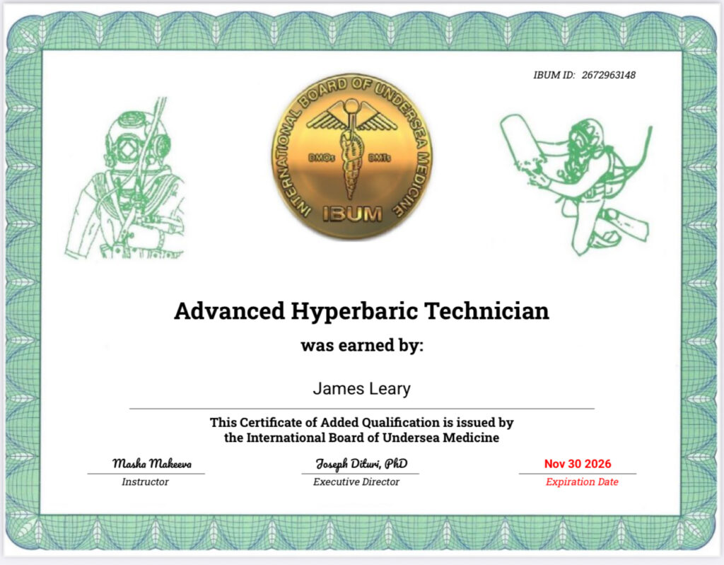 Franchisees will receive full comprehensive (IBUM) certificated training by one of the worlds established and recognised Hyperbaric Medicine Doctors.